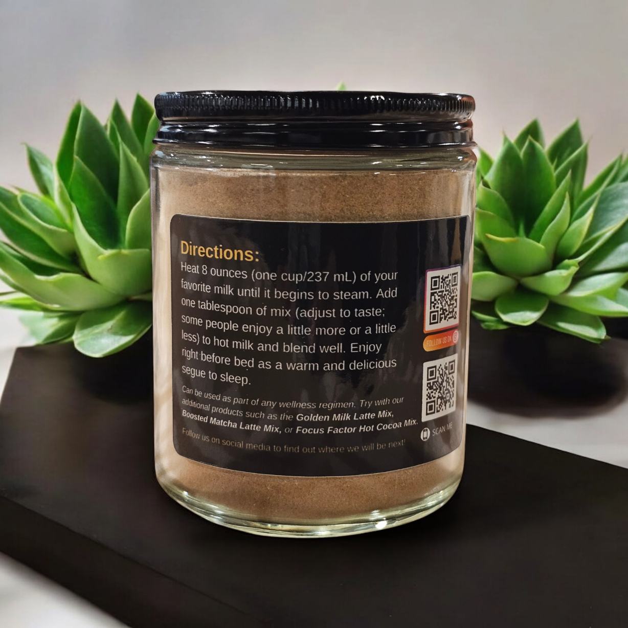 Release stress, lower cortisol, enjoy a sound sleep with this rosy, phenomenal sleep aid. Heat 8 ounces (one cup/237 mL) of your favorite milk until it begins to steam. Add one tablespoon of mix (adjust to taste; some people enjoy a little more or a little less) to hot milk and blend well. Enjoy right before bed as a warm and delicious segue to sleep. Approximately 16 servings.